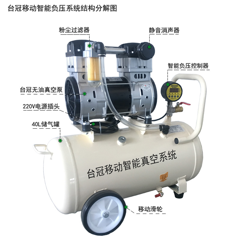②配有一個40L的加厚真空儲氣罐,真空度和流量達到穩定性。